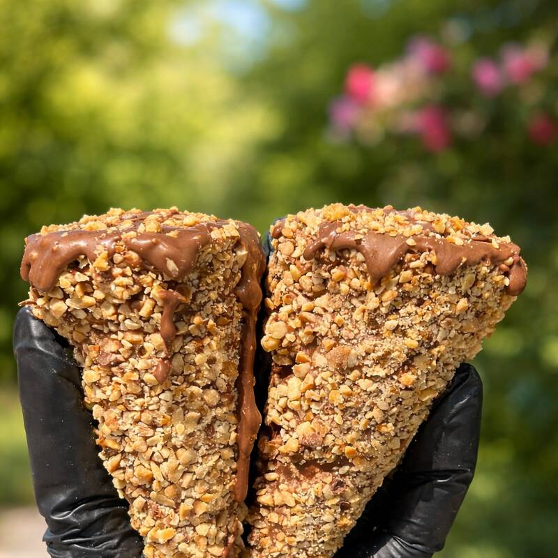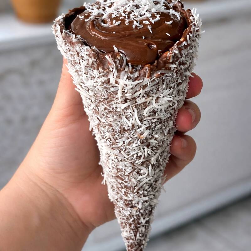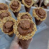 Esse vai ganhar seu coração, cascão coberto com chocolate e recheio de Ferrero com ninho e creme de avelã. Obs: Para delivery todos os cones vão fechados com chocolate e pode variar na decoração.