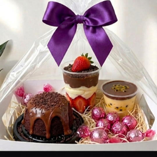 Encomendas até 02/05 Na cesta Doçura contém: 1 mini vulcão sabor chocolate com brigadeiro, 1 copo da felicidade de ninho com brigadeiro e morangos, 1 unid de mousse de maracujá com brigadeiros , e 10 mini trufas. (Em breve divulgaremos valores)