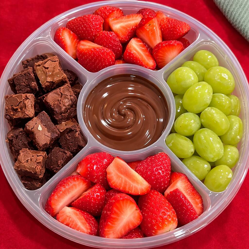 Fondue para 2 pessoas , acompanha chocolate ao leite, brownie, uvas sem sementes e morango.