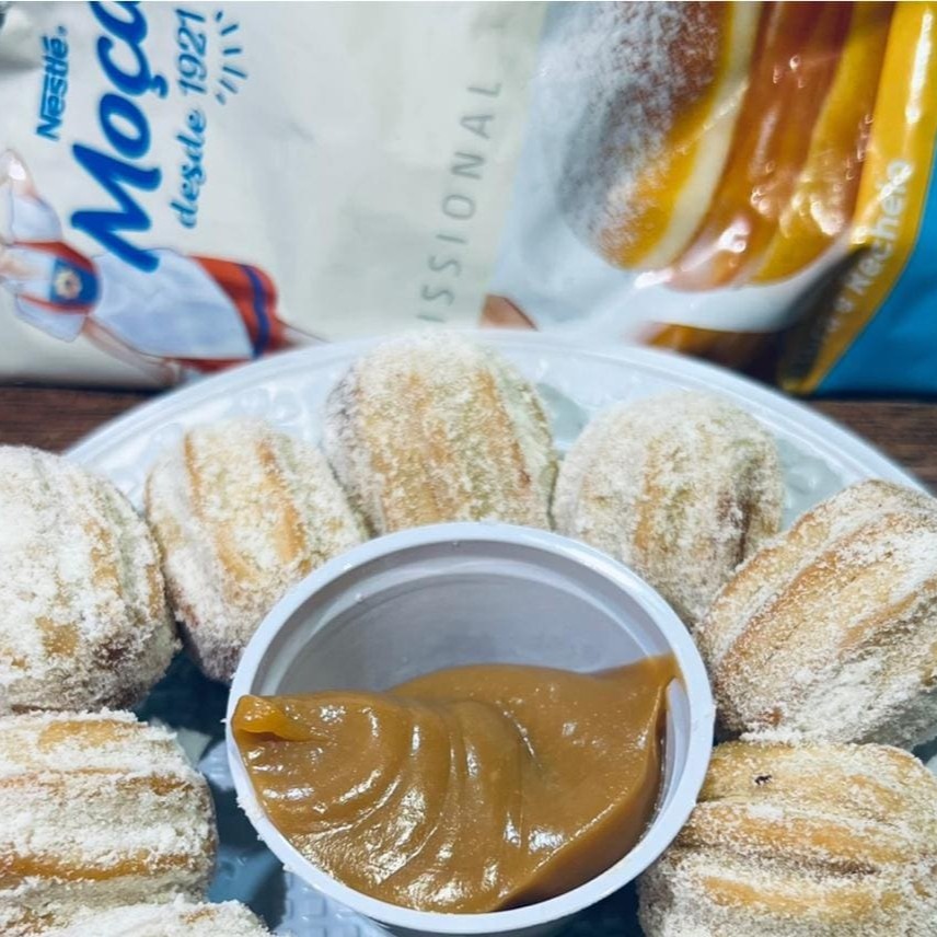 Churros Recheado com Doce de Leite Nosso churros é generosamente recheado com doce de leite, empanado no açúcar com leite Ninho para um toque irresistível. Acompanha uma porção extra de Doce de Leite Moça para mergulhar e se deliciar ainda mais. Uma explosão de sabor em cada mordida!