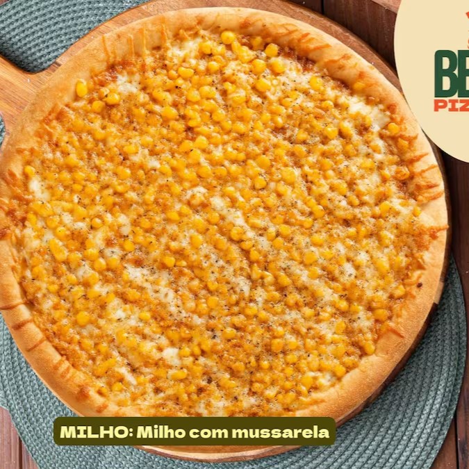Camada generosa de muçarela derretida combinada com milho verde suculento, criando uma pizza leve e saborosa.
