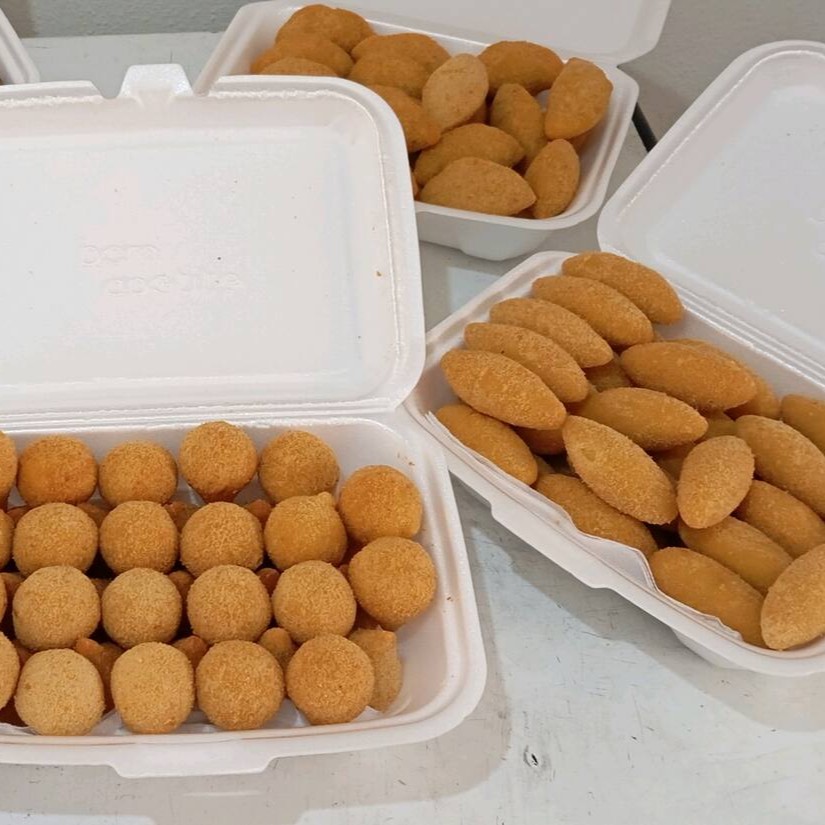 10 coxinhas 10 bolinha de queijo 10 risoli de presunto e queijo 5 risoli de carne moída e ganha um refrigerante de 200 ml