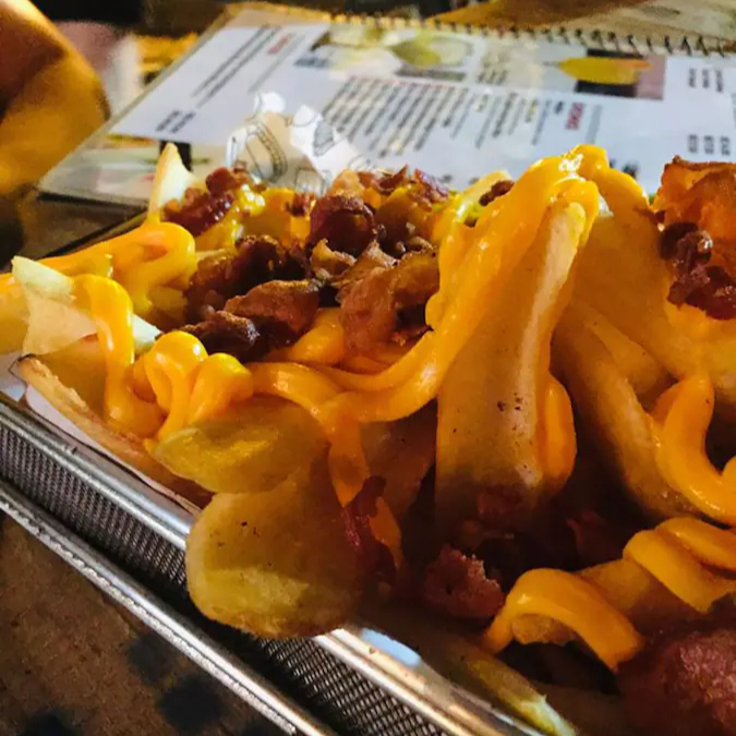 Fritas com cheddar e bacon