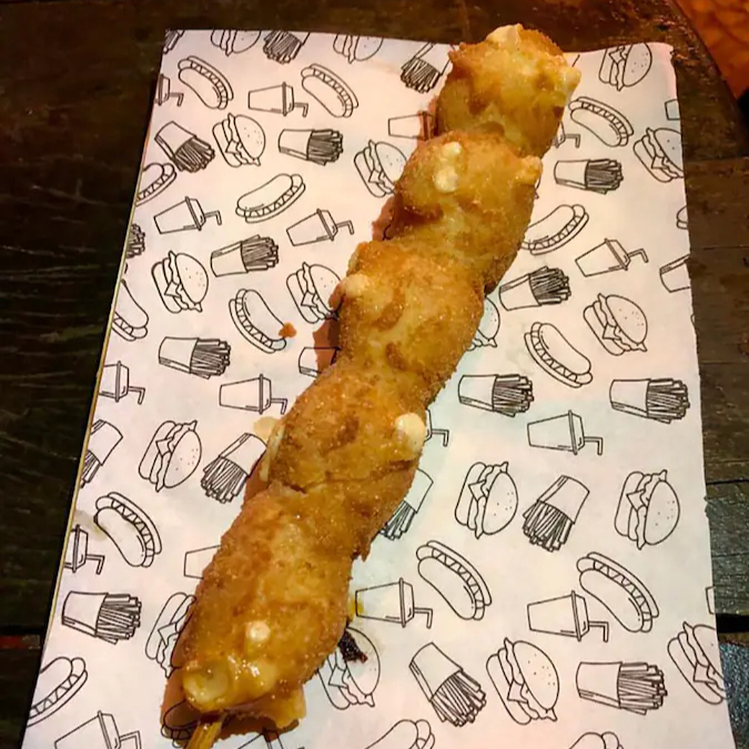 Pão Brioche, burger shimeji empanado, catupiry, tomate, rúcula, cebola roxa e mostarda e mel