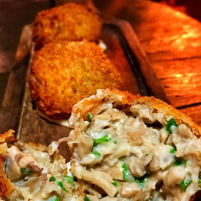 Porção com 6 Bolinhos de Shimeji e Catupiry, com casquinha crocante