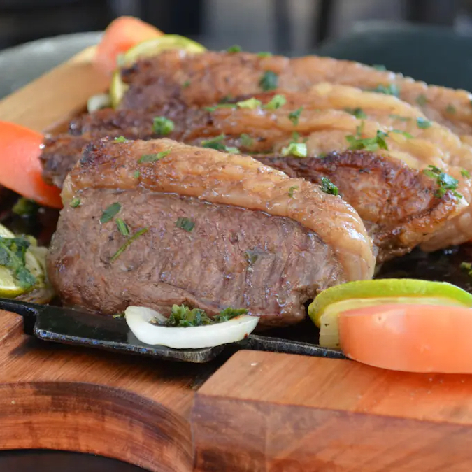 600g de picanha grill macia e suculenta, com arroz, fritas, vinagrete, farofa e salada