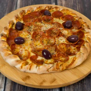 Muçarela, calabresa moída, catupry,tomate picado, alho frito e azeitona preta