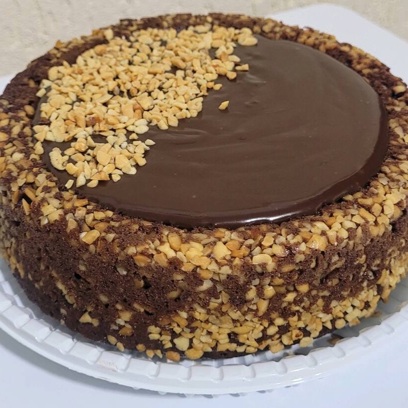 Inspirado na icônica barra de chocolate "Shot". Massa artesanal de chocolate com amendoim crocante, e cobertura cremosa de chocolate trufada - Padronizadas na forma de 19cm de diâmetro, rende de 10 a 15 fatias. -