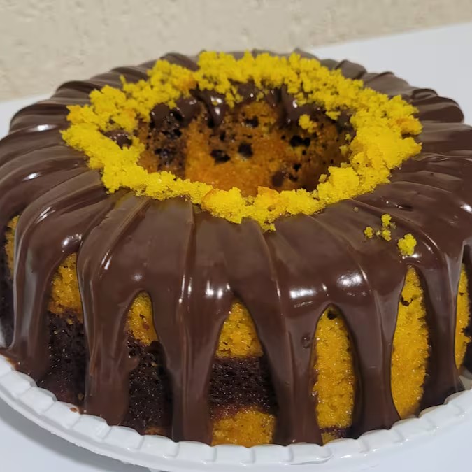 Massa artesanal de Cenoura, com cobertura de Brigadeiro Trufado. - Padronizados na forma de 19cm de diâmetro, serve de 10 a 15 fatias. -