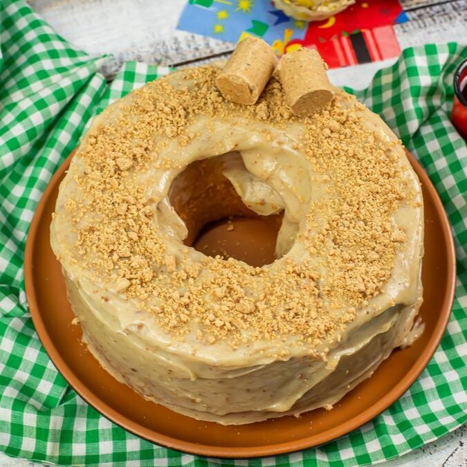 Um clássico da roça com um toque de pura tentação. O Paçoca c/ Brigadeiro combina a textura amanteigada de um bolo com farofinha de paçoca na massa e o recheio cremoso de brigadeiro de paçoca — sim, é paçoca em dose dupla, do jeitinho que a gente ama. Coberto com brigadeiro de paçoca. Doce na medida certa, irresistível em qualquer ocasião. Aproximadamente: 450g, rende cerca de 08 à 10 fatias.