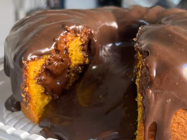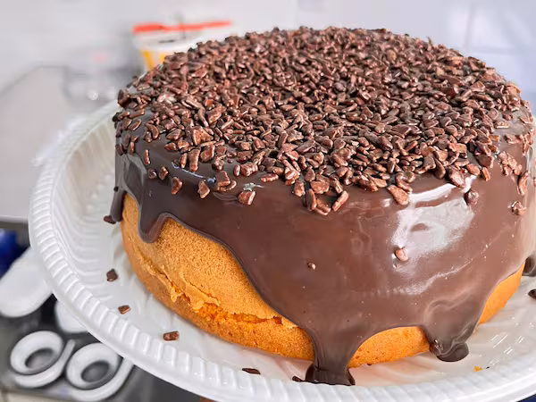 Clássico fofinho, úmido e artesanal com cobertura caseira. O bolo que conquista gerações! *_Serve aprox. 8 fatias (550g)_*