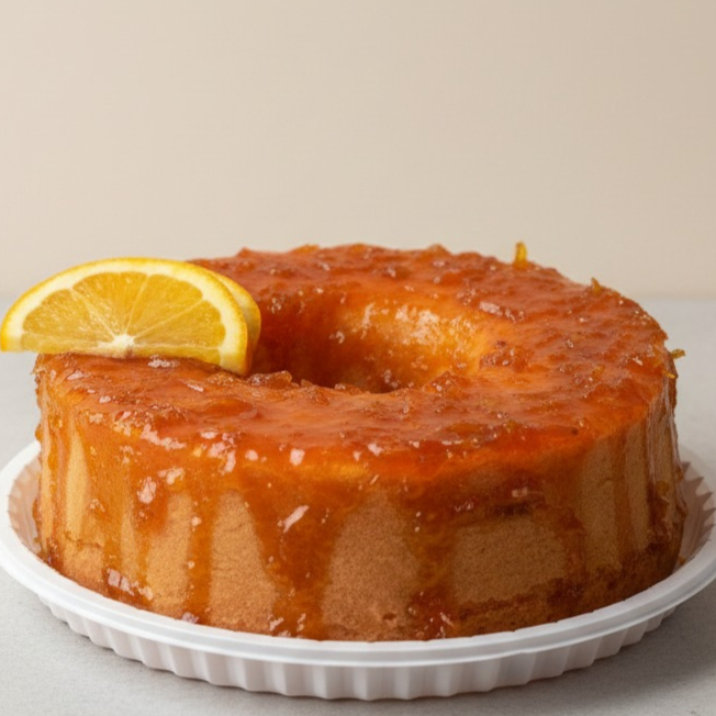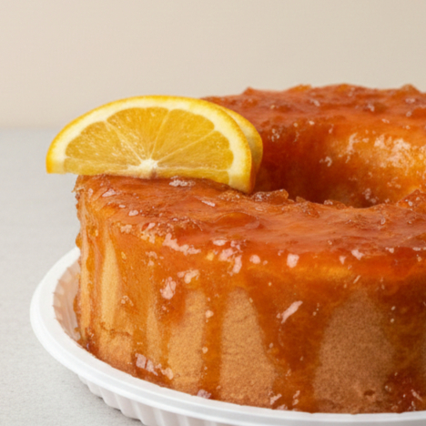 Bolo úmido realçado por calda artesanal de laranja. Intensidade de sabor em cada fatia! *_Serve aprox. 8 fatias (700g)_*