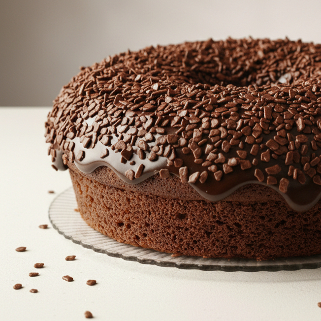Massa fofinha com granulados de chocolate espalhados por toda fatia. Divertido, fofo e delicioso! *_Serve aprox. 8 fatias (550g)_*