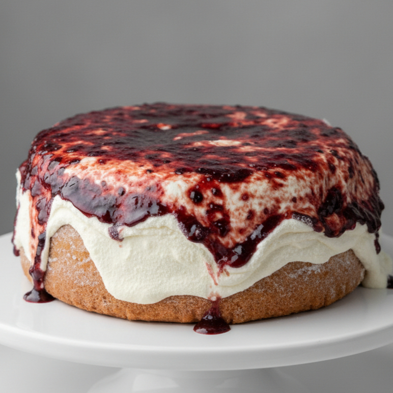 🍓🥛🌋 Vulcão de Geleia de Frutas Vermelhas com Creme de Ninho Equilíbrio entre o frescor da geleia artesanal e a leveza do creme de ninho. ✨ Doce na medida certa, impossível resistir! *_Serve aprox. 8 fatias (900g)_*