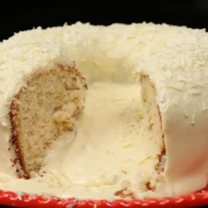 Bolo com a massa de leite Ninho, coberto com creme de Ninho e polvilhado leite Ninho