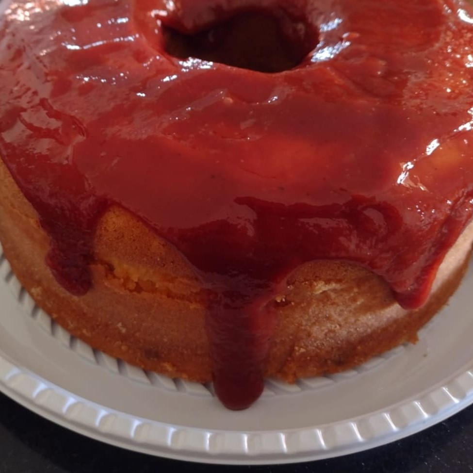 Bolo de fubá fofinho coberto com goiabada cremoso