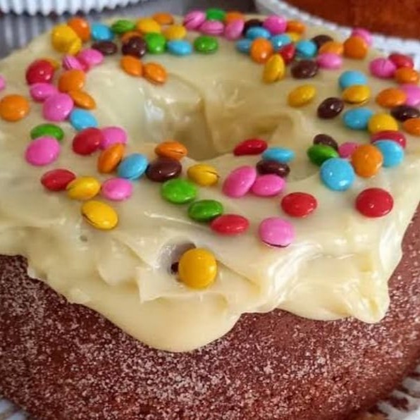 Massa de leite Ninho fofinha , coberto com uma deliciosa cobertura de leite Ninho com complemento de confetes