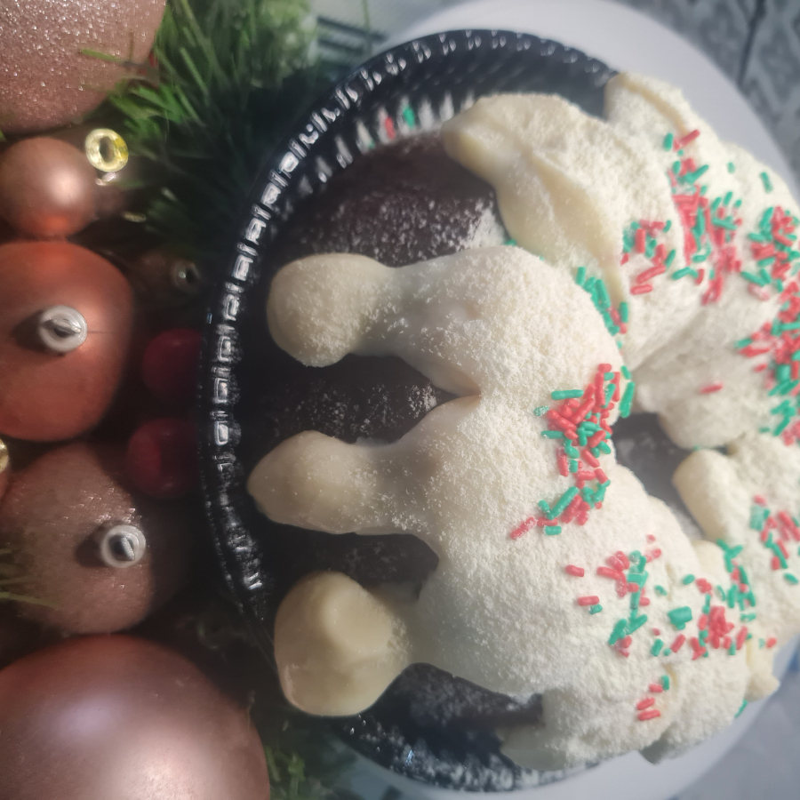 Massa de ninho com cobertura de creme de ninho e decorado com granulado natalino