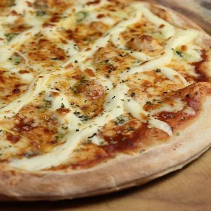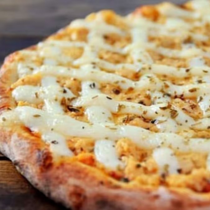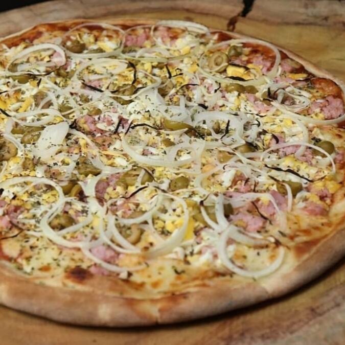 Pizza Grande (35cm) 8 Pedaços - Delicioso recheio de mussarela, Catupiry Original, provolone, parmesão, molho de tomate, orégano e azeitonas.