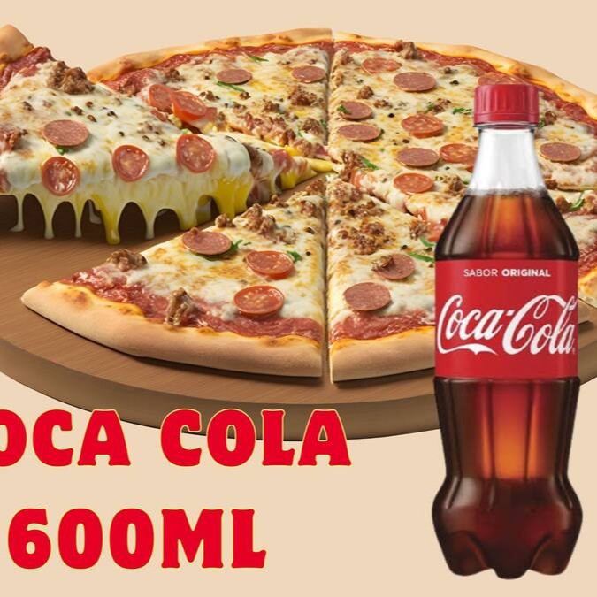 Promoção Pizza Grande (35cm) - Delicioso recheio de mussarela, Catupiry Original, provolone, parmesão, molho de tomate, orégano e azeitonas + 1 Coca-Cola 2 Litros.
