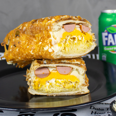 Pão 120g, purê de batatas cremoso, salsicha Sadia, batata palha, Catupiry, cheddar cremoso, mussarela e nossa famosa crosta de queijo parmesão