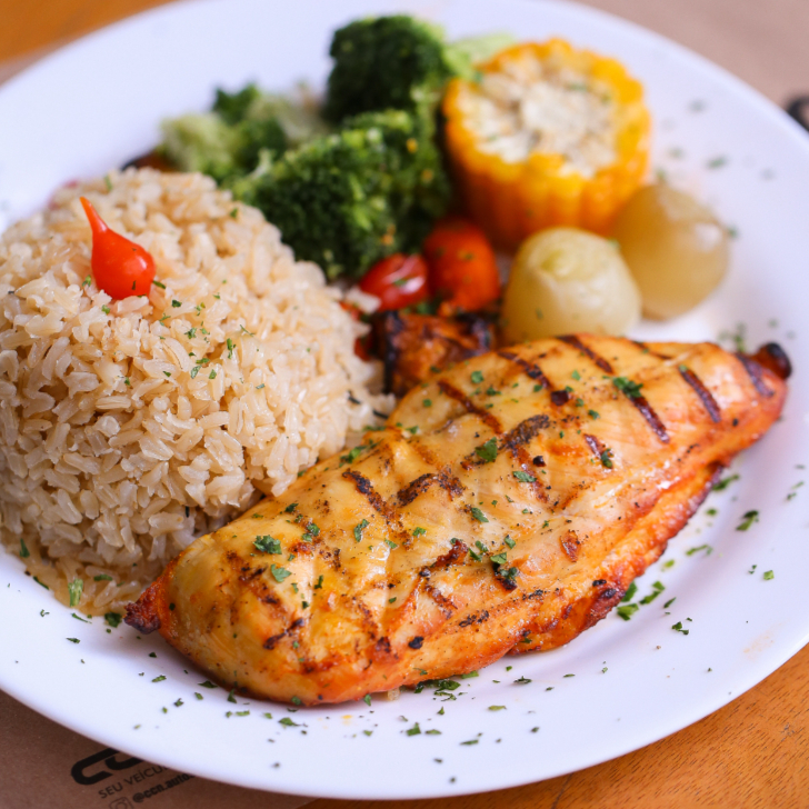 Frango Grelhado C Arroz Integral E Legumes Na Manteiga