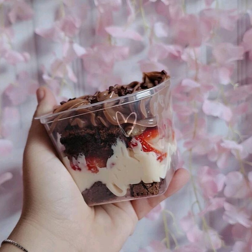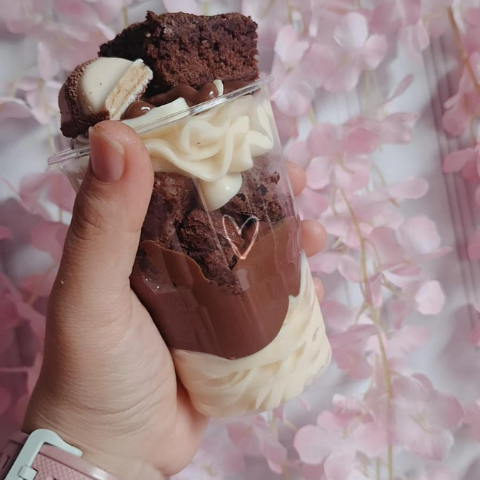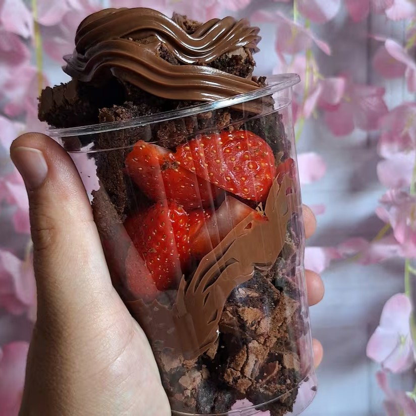 Brigadeiro, brigadeiro de Ninho, brownie molhadinho, morangos selecionados. O melhor copo da felicidade que voce vai comer na sua vida!