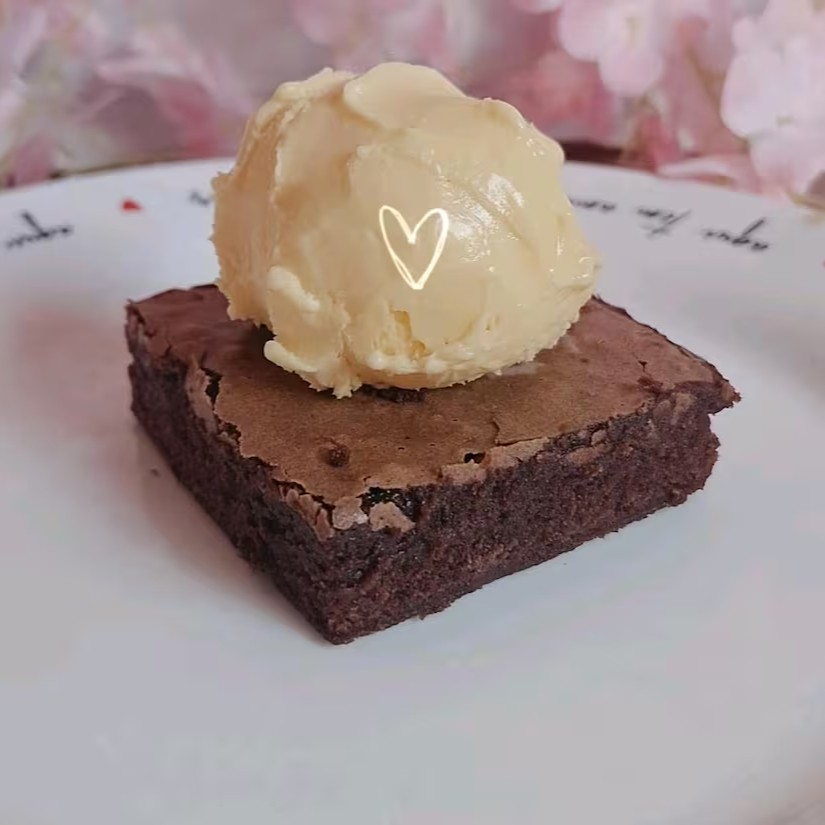 Nosso tradicional brownie chocolatudo, agora com uma bola de sorvete de creme * Foto ilustrativa, os itens são enviados separadamente em embalagem descartável