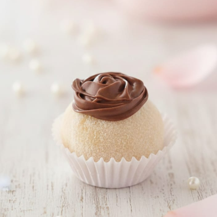 Pão de ló de baunilha, coberto com brigadeiro de Ninho cremoso e Nutella purinha