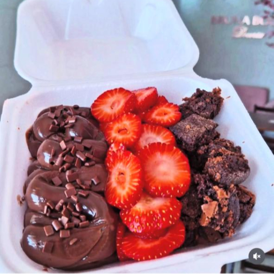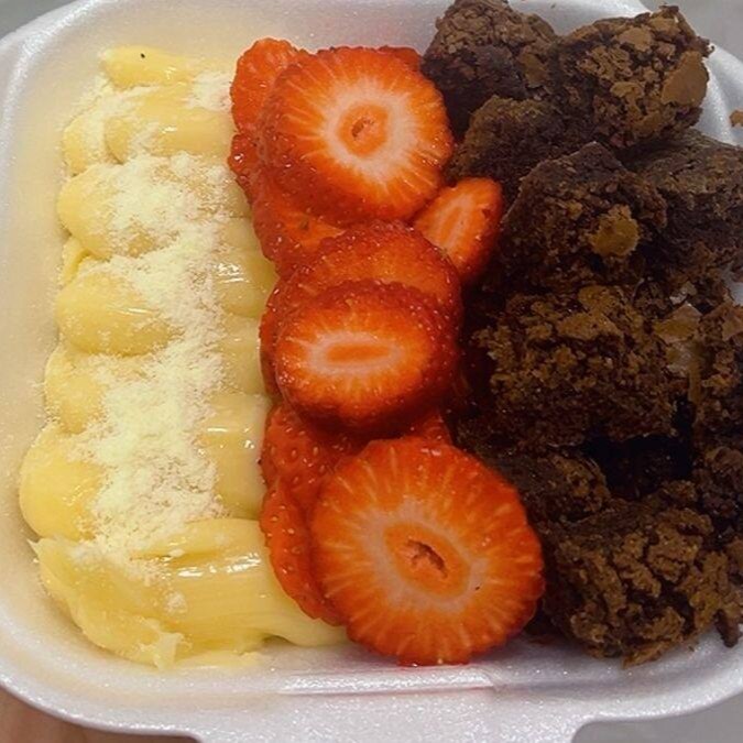 Caixinha Trio Vai Com Alguns Pedacos De Brownie Morangos E Ninho