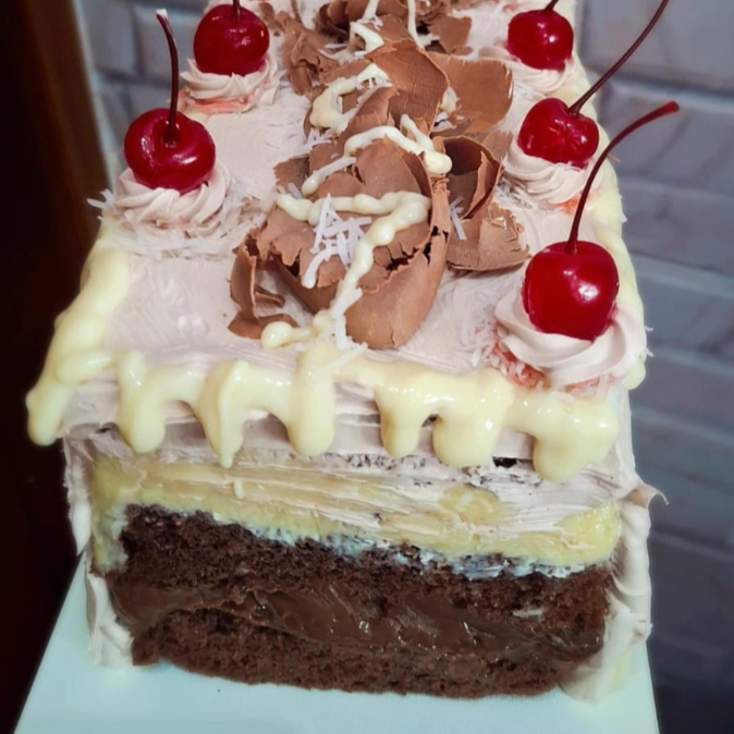 Massa baunilha e chocolate recheio Ninho e brigadeiro