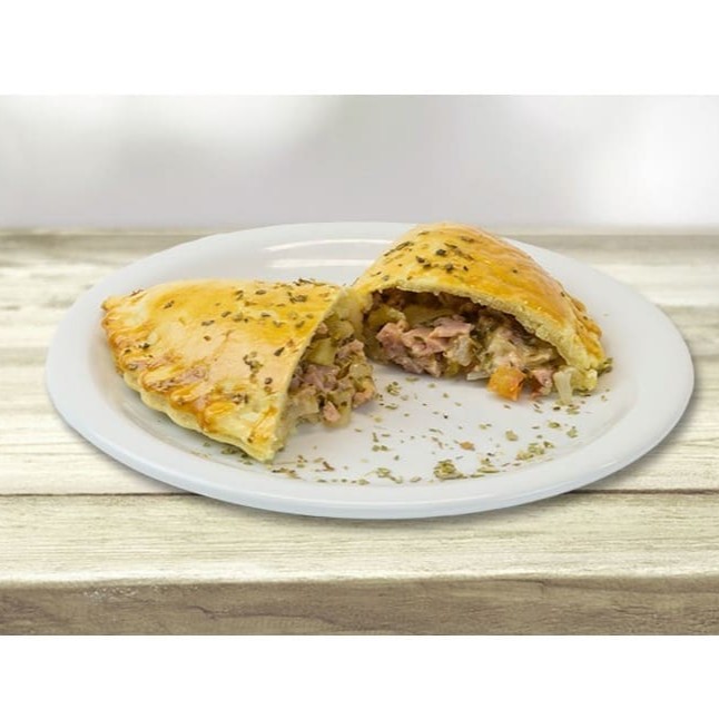 Salgado recheado com presunto, mussarela. (contem tomate, orégano e cebola)