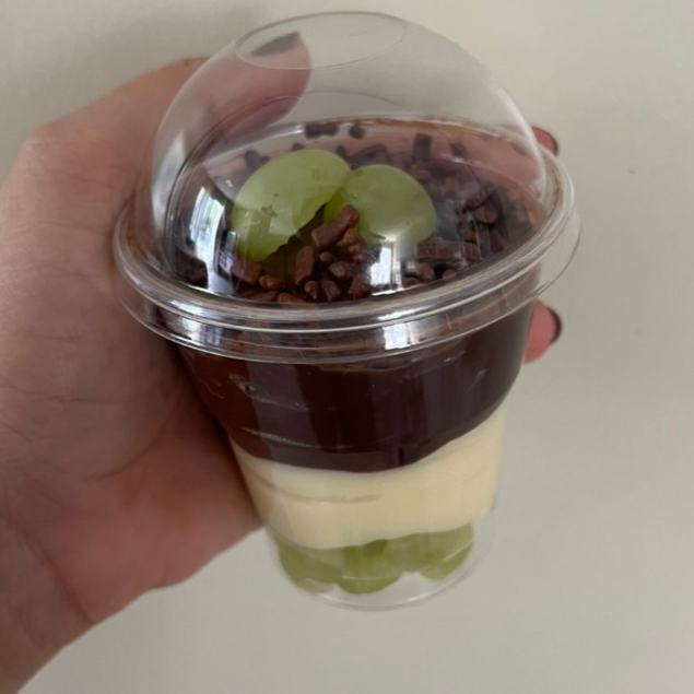 Camadas irresistíveis de creme branco super cremoso, ganache de chocolate e uvas verdes fresquinhas, finalizado com granulado crocante. A combinação perfeita entre o doce do chocolate e o frescor da fruta, na medida certa para matar a vontade de sobremesa. Ideal para comer geladinho a qualquer hora do dia!