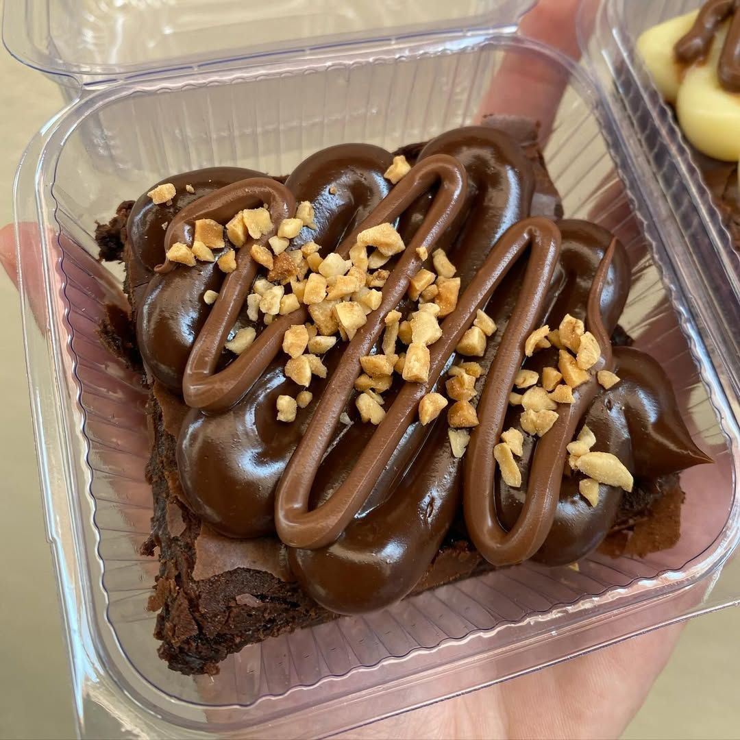 Brownie artesanal super chocolatudo, com massa bem úmida e intensa, daquele jeito que derrete na boca! Finalizado com uma camada generosa de brigadeiro cremoso, cobertura em fios de nutela e um toque crocante de amendoim triturada, trazendo equilíbrio perfeito entre cremosidade e crocância.