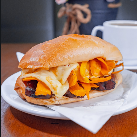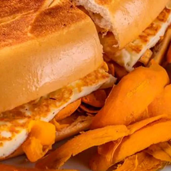 O clássico lanche amazônico: pão francês crocante, tucumã fresco, banana pacovã e queijo coalho derretido.