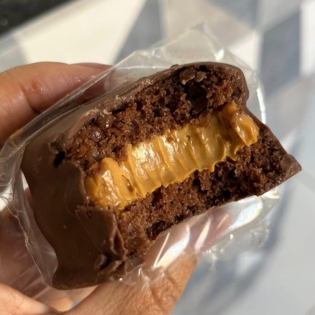 Macio, úmido e super chocolatudo, ele é recheado generosamente com um creme de doce de leite bem cremoso, que derrete a cada mordida. A massa é fofinha e intensa no sabor de chocolate, combinando perfeitamente com a cobertura lisa e brilhante de chocolate ao leite que envolve tudo.