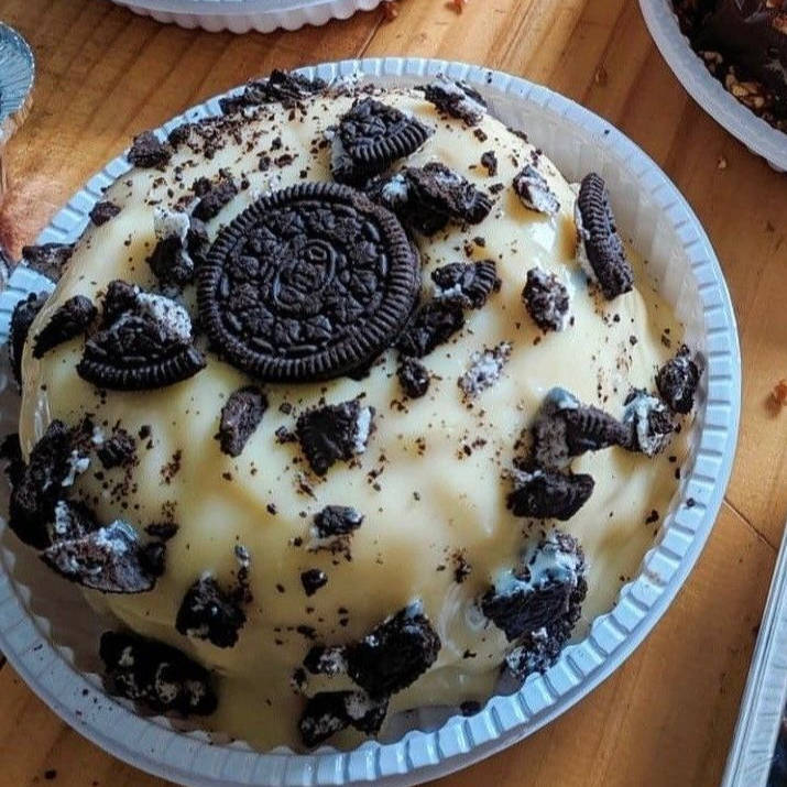Bolo macio de massa de chocolate com pedaços de Oreo na massa, super fofinho e saboroso. Coberto com creme branco cremoso estilo cookies & cream e finalizado com uma calda generosa de Oreo derretido no centro, que escorre como um vulcão a cada colherada. A combinação perfeita de chocolate e biscoito para uma sobremesa irresistível.