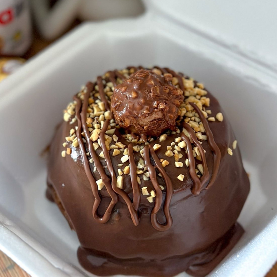 Massa fofinha e intensa de chocolate, recheada e coberta com uma generosa camada de chocolate cremoso. Finalizado com calda brilhante, pedacinhos crocantes de amendoim, fios de Nutella e um irresistível Ferrero Rocher no topo.