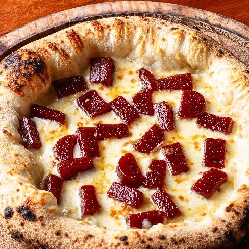 Molho de tomate italiano, muçarela, pancetta artesanal defumada, goiabada e parmesão.
