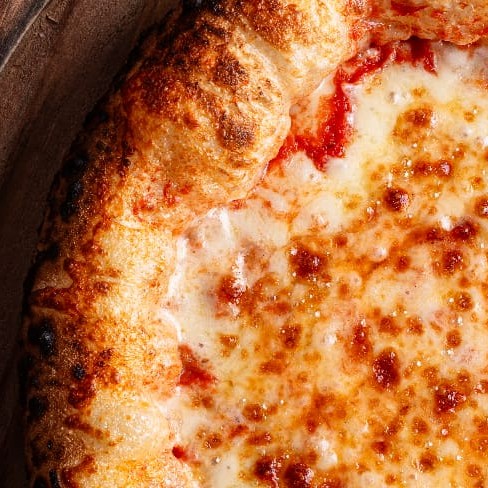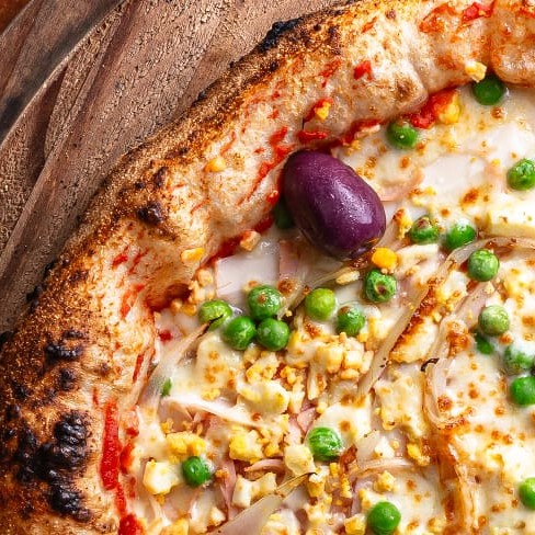 Molho de tomate italiano, muçarela, bacon artesanal, ovo e queijo parmesão.