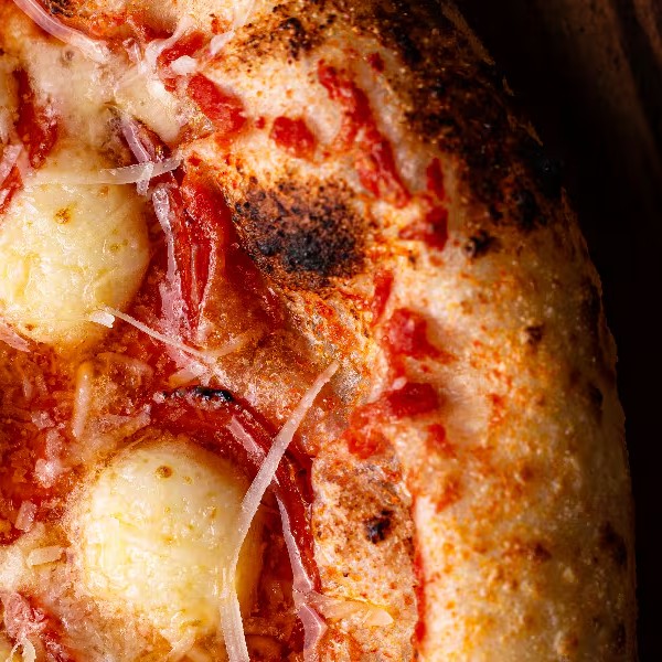 Molho de tomate italiano, muçarela, pancetta artesanal defumada, goiabada e parmesão.