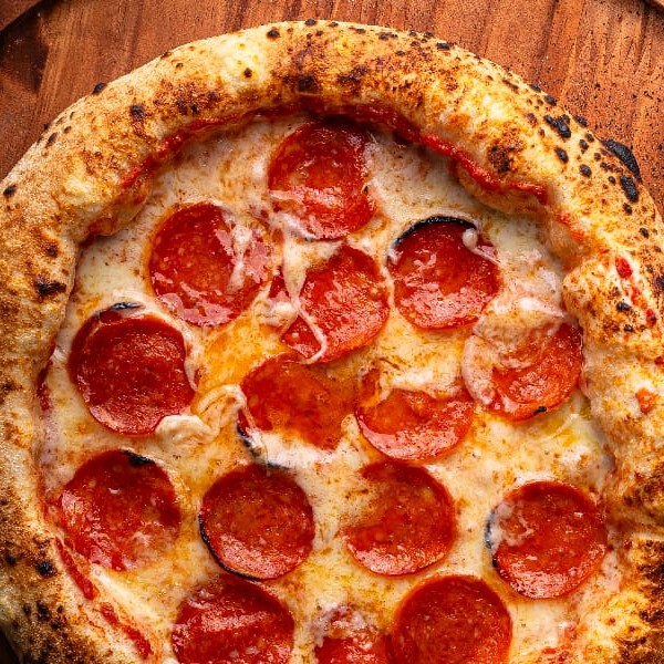 Molho de tomate italiano, muçarela, pepperoni e parmesão.