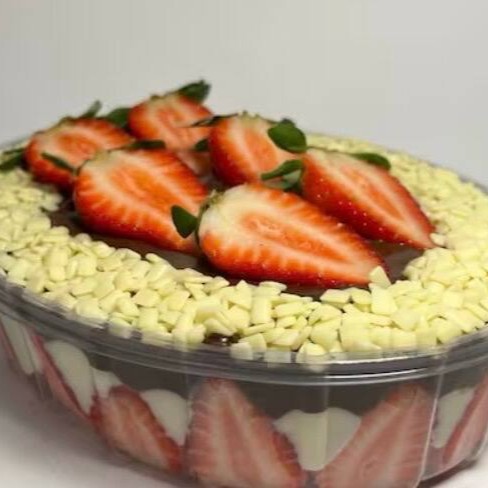 Feita com brigadeiro de Ninho cremoso, camada de morangos fatiados, finalizado com ganache de chocolate nobre blend, granulado nobre branco e mais morangos. Travessa TAMANHO P, peso de 750 gramas. Medidas internas da travessa 16,5 comprimento X 12 largura X 8 altura. ( Em dúvidas com o tamanho da travessa conferir as medidas descritas acima antes de realizar o pedido).