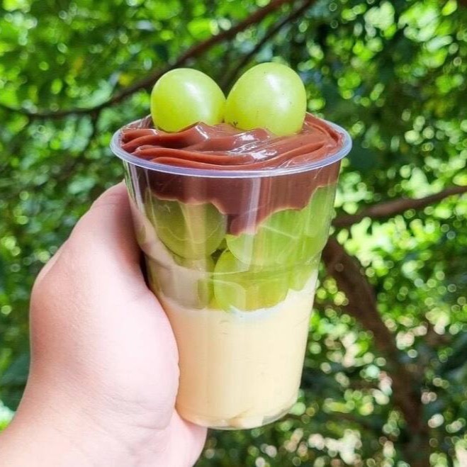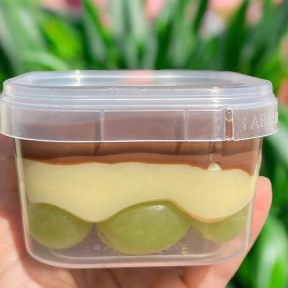 Composto por Uvas Verdes sem semente selecionadas, brigadeiro de Ninho cremoso e brigadeiro de Chocolate cremoso. Copo leve e muito saboroso !