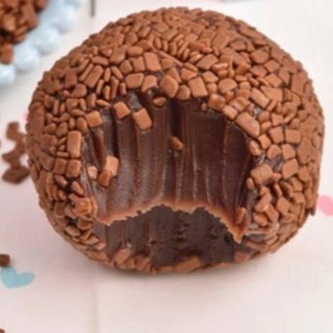 Brigadeiro de chocolate envolto no granulado de chocolate nobre ao leite.