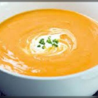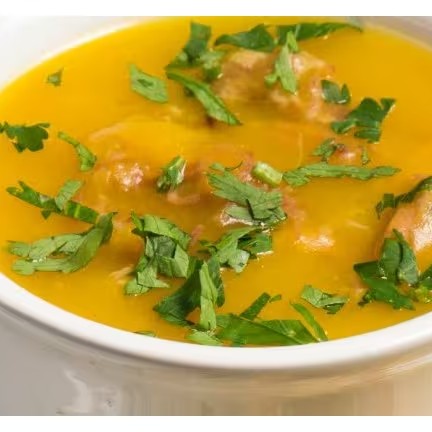 Sopa mix de cenoura, batatinha, mandioquinha, especiarias e ervas.