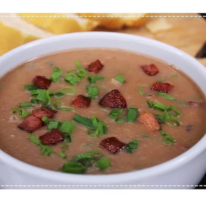 Sedutor Caldinho de Feijão com Bacon, um clássico da categoria 'Caldos & Sopas'. Este prato é uma mistura harmoniosa de creme de feijão suavemente temperado com especiarias selecionadas, realçando os sabores ricos e autênticos. Adicionamos generosas tiras de bacon crocante e pedaços suculentos de calabresa, que não só adicionam uma profundidade de sabor, mas também uma textura agradável. Para finalizar, uma pitada de ervas frescas é salpicada, criando uma experiência gastronômica inigualável. Sem dúvida, uma escolha perfeita para aquecer o seu coração e satisfazer o seu paladar.
