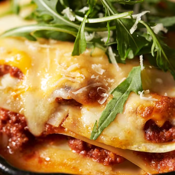 Pasta fresca, camada de molho sugo artesanal, camada de molho branco com queijo mussarela e finalizada com uma camada de parmesão gratinado.