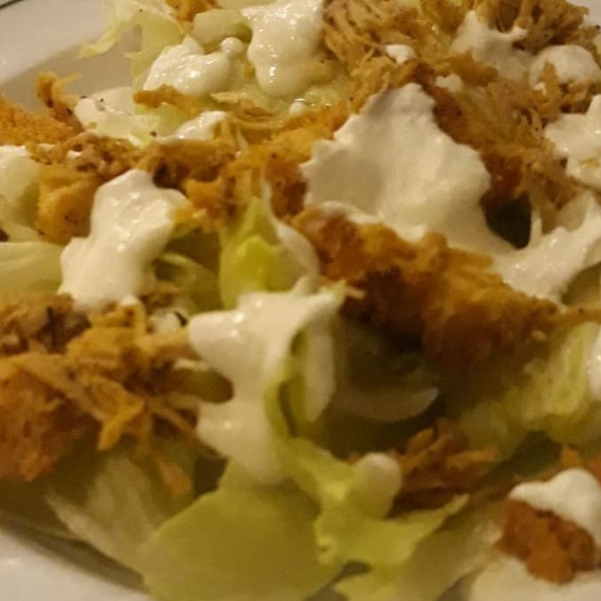 Alface. Crutons, frango desfiado e molho especial.