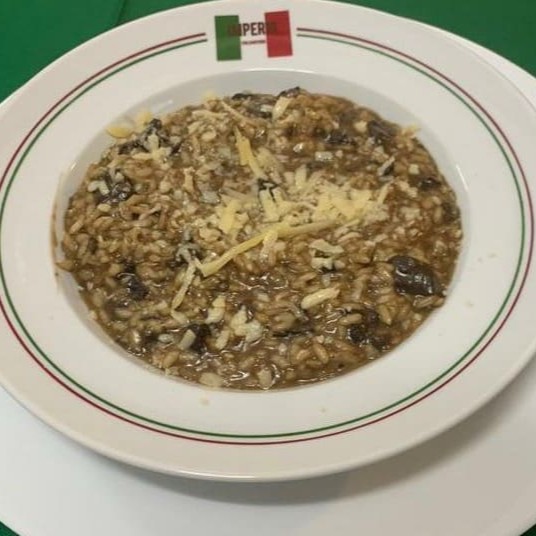 Arroz arbóreo, funghi secco, queijo ralado, creme de leite.